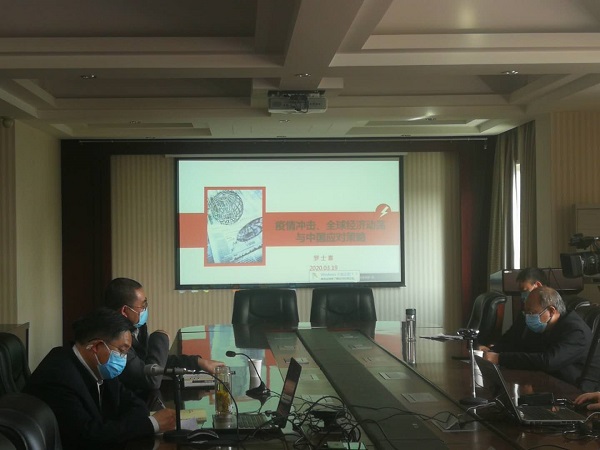 罗董事长分析了本次新冠疫情对全球经济造成的影响与冲击,指出这次金融动荡本质上是2008年金融危机的延续,根本原因在于西方社会治理危机的思想与理论存在严重缺陷,解决出路应从马克思主义政治经济学理论中寻找,并提出我国当前应化危为机,充分发挥我国体制优势,积极拥抱以“5G”信息技术为核心的新基建战略,给出了面向河南省应对危机策略建议。最后,罗董事长指出目前世界经济动荡,只要我们坚持在中国共产党的领导下,做好自己的事,搞好一带一路,用构建人类命运共同体这个理念来推动世界经济发展,就能实现中华民族伟大复兴。
