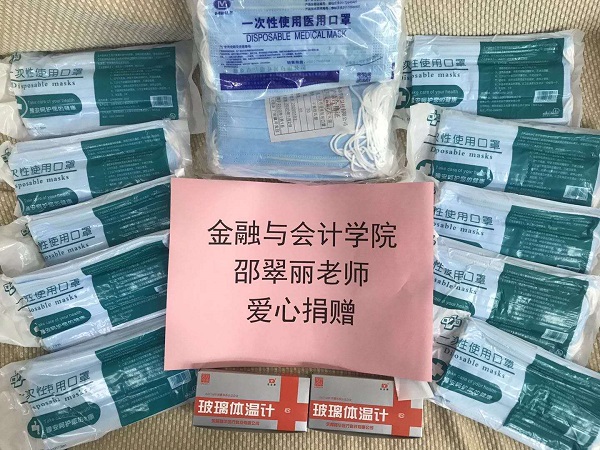 公司党委响应党中央和公司党委的号召,在师生中开展了爱心捐赠活动:2月22日,太阳成tyc7111cc13级财务管理张春振员工向学校捐赠90瓶舒洁洗手液;2月23日邵翠丽副经理向学校捐赠一次性口罩400只,水银体温计20个;2月24日陈红玲夫妇向学校捐赠价值2000元的10斤装二氧化氯消毒液21套…….。一个个数字虽不是那么注目,但心系祖国、爱校如家的爱心是可贵的,“不忘初心、牢记使命”的担当精神是无价的。我们相信随着千千万万白衣天使奔赴疫区,千千万万名中华儿女投入战“疫”,千千万万股暖流汇聚成河,病毒终将被消灭,春天很快会到来。