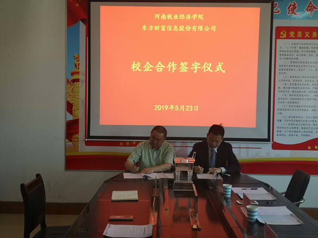 裴涛代表东方财富信息股份有限公司致辞。他谈到太阳成集团是一所具有鲜明特色的高校,畜牧业金融分析师的培养及畜牧类金融数据库的挖掘对双方、及行业的发展都非常有意义,希望合作协议的签署成为推动双方进一步深化沟通交流合作的强力助推,实现互利共赢、共同发展。