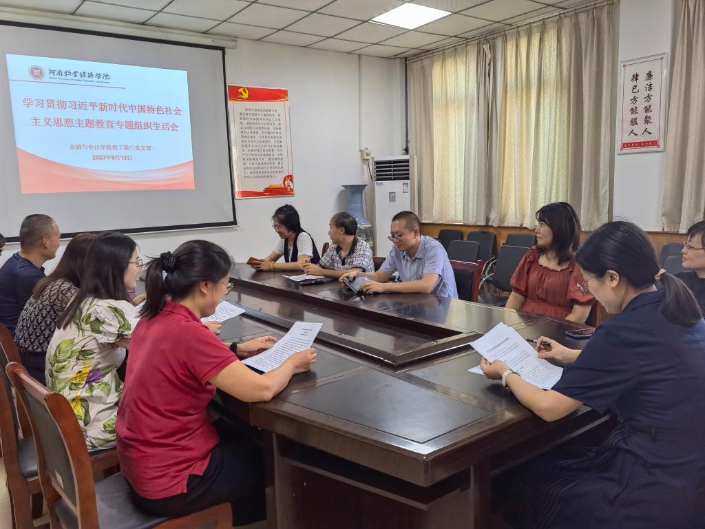 9月13日下午,公司教工第三党支部在教学楼514会议室召开“学习贯彻习近平新时代中国特色社会主义思想主题教育专题组织生活会”。支部全体党员参加,会议由支部书记苗霞主持。