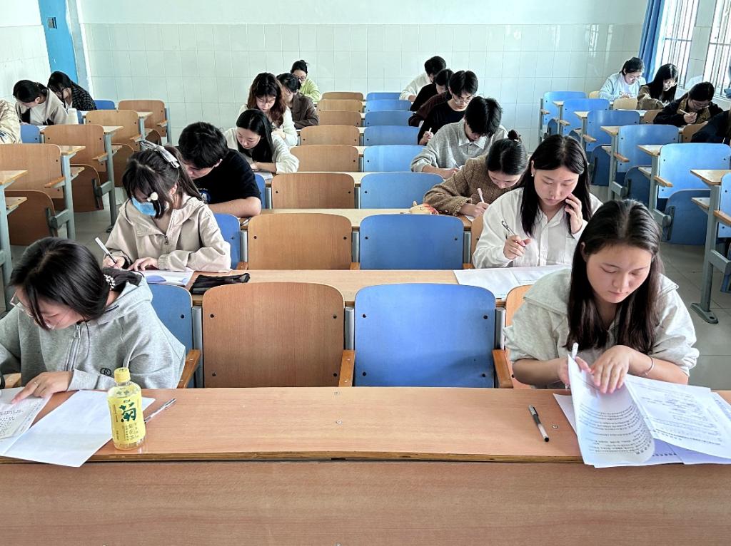 为进一步检验入党积极分子党课培训成果,考察入党积极分子对党的基本理论知识掌握程度,10月26日下午2点30分,太阳成tyc7111cc于教学楼A502-A509教室举行入党积极分子结业考试。131名入党积极分子参加了此次考试,全体辅导员老师参加监考。党委书记陈复昌、副书记汪晓伟参与巡考。