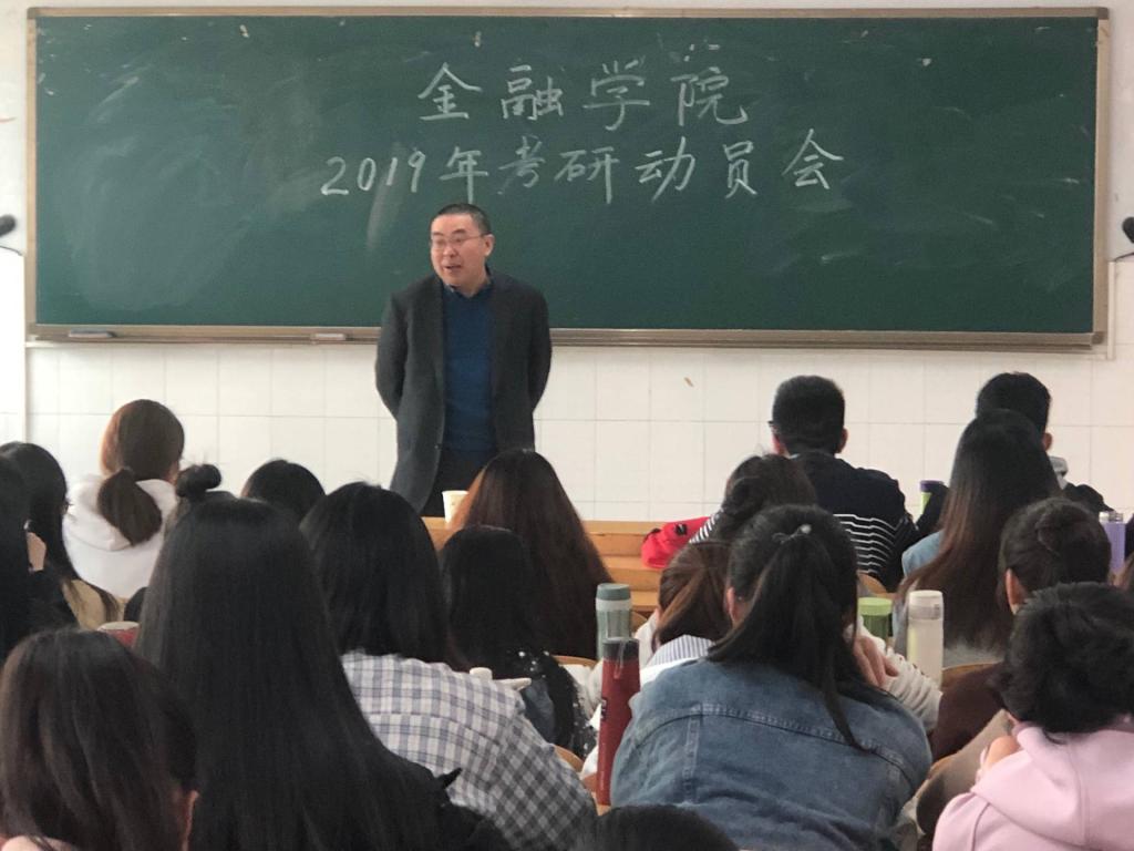 为了使同学们对考研有更加深入的了解,帮助同学们确立正确奋斗目标,增强考研的信心,提升考研竞争力,金融学院于4月11日下午四点在W303召开了“金融学院考研动员大会”。本次大会由辅导员申作光老师主持,经理黄良杰主讲,全院各年级有意向参加考研的员工参加了会议。