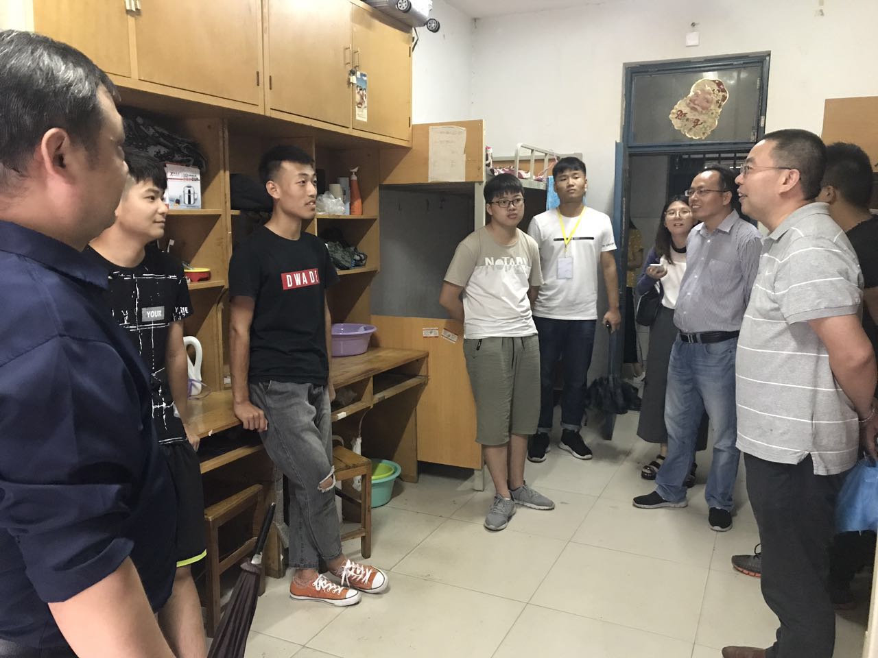 此外,金融学院经理黄良杰、党总支书记胡红林、党总支副书记贾宪军为更好的了解新生情况,带领着大一新生辅导员老师们深入新生宿舍,对新生送上关心问候。黄经理希望新生能尽快适应老员工活,并勉励新生在新学期中敏而好学,胡书记则十分关注对新生的刚入校的生活情况及身体健康,并倡导“健全的思想寓于健全的身体”。此番视察增进了师生情谊,让新生体会到公司的温暖和谐。